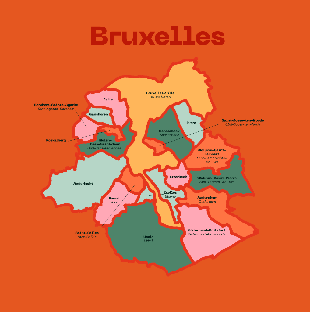 Bruxelles è una città stratificata. Il centro storico conserva un forte legame con la sua storia medievale, con vie strette e tortuose che riflettono la crescita organica della città nei secoli passati. Qui le intitolazioni femminili sono ancora limitate, mentre prevalgono, invece, i nomi di figure storiche maschili, sovrani e santi.