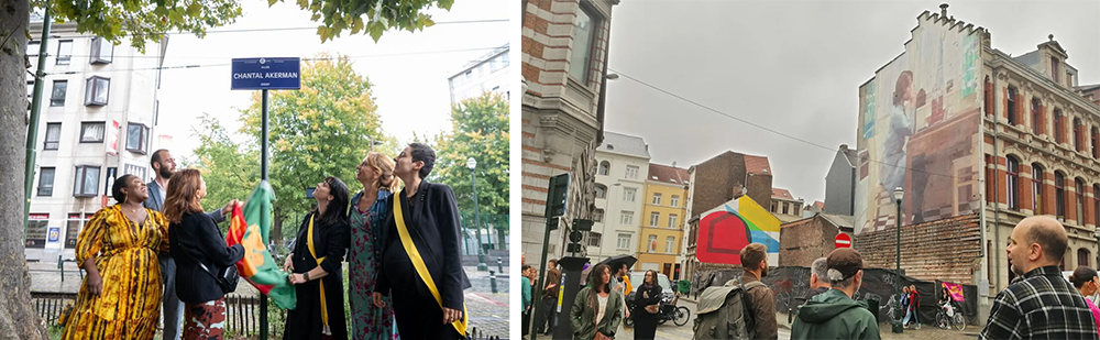 Rue Chantal Akerman fu dedicata nel 2023 alla regista, scrittrice e artista belga, considerata una delle più influenti cineaste del XX secolo, che ha esplorato temi come l’identità, la memoria e l’alienazione, rompendo spesso le convenzioni narrative. Bruxelles ha inoltre onorato la regista con un murale dell’artista spagnola Alba Fabre Sacristán che ha riprodotto una scena del film Jeanne Dielman, 23 quai du Commerce, 1080 Bruxelles, considerato una pietra miliare del cinema femminista. Il murale (nella foto di destra), posto sulla facciata di una casa all’angolo tra Quai aux Barques e Rue Saint-André, fa parte di un percorso di Street Art su cui si sta ancora lavorando.