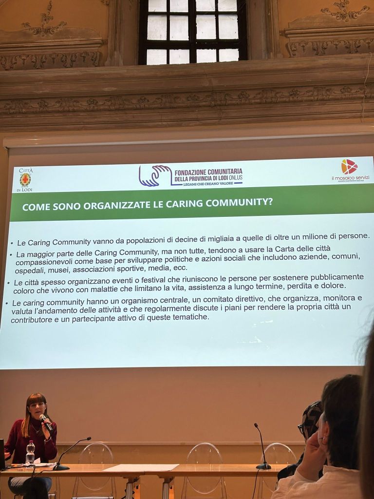 Il tema è stato il centro dell’evento conclusivo del progetto “Verso una città compassionevole: Lodi si narra”, che si è svolto a Lodi il 1° febbraio 2025 per condividere i risultati del progetto condotto nel 2024 e le prospettive per il 2025, con l’obiettivo di realizzare la caring community di Lodi. Il progetto è sostenuto, oltre che dall’Amministrazione comunale, anche da numerose associazioni del territorio e punta sulla cosiddetta “Medicina narrativa”, approccio alla pratica medica basato sulla partecipazione attiva delle persone coinvolte che valorizza le storie e le narrazioni delle/dei pazienti come parte integrante della cura e della comprensione della salute, riconoscendo che le esperienze individuali, le emozioni e le prospettive sono fondamentali per una comprensione più completa della singola condizione di salute.