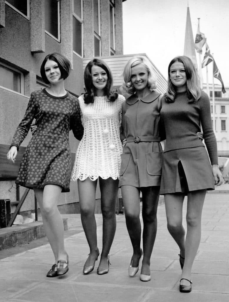 L’accorciamento delle gonne portò anche quello di altri capi, come i più tradizionali abiti da donna, facendo nascere i mini-abiti.