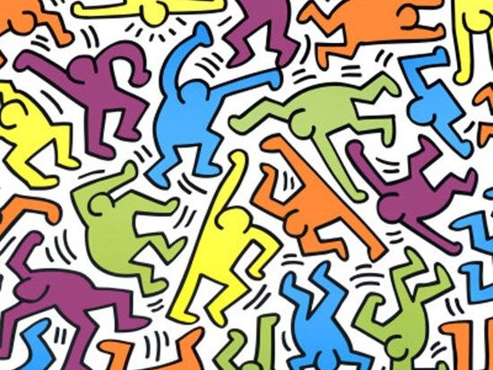 Opera completamente diversa da quella di Basquiat è Michael Stewart – USA for Africa (1985) di Keith Haring (Reading, 1958 – New York, 1990) dedicata allo stesso episodio a cui fa riferimento Defacement. Questa volta Michael è nudo e sta per essere strozzato con un tubo tenuto da gigantesche mani bianche. È lo stile abituale di Haring, con figure bidimensionali, stilizzate e un vivace e luminoso cromatismo. Comune invece ai due artisti è il messaggio di solidarietà contro politiche razziste e discriminatorie. Keith Haring ha lottato con la sua arte contro ogni tipo di discriminazione: i suoi omini stilizzati senza tratti distintivi, sono privi di qualsiasi caratterizzazione, non sono né bianchi, né neri, né gialli, non sono né uomini né donne, riflettono uguaglianza e inclusione rispetto a ogni tipo di pregiudizio, razziale, sessuale o di qualsivoglia genere. Le figure, spesso rappresentate in movimento, col loro dinamismo simboleggiano la connessione tra le persone, l’importanza di un dialogo inclusivo, capace di superare differenze di genere, età, o orientamento sessuale, per una società più giusta e solidale.