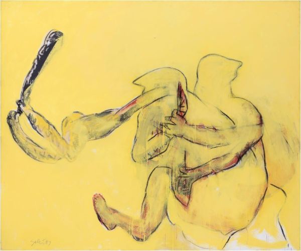 Nata Anna-Gabriele Müller a Saarbrücken in Germania nel 1944, vive a Berlino. Inizialmente si è formata con i pittori del movimento Cobra, che predicavano una rottura estetica con gli ideali occidentali. Nel 1969 si è trasferita a Berlino Ovest, una città che in quel periodo era a una profonda svolta: si stava allontanando dai postumi del nazifascismo verso una crescente libertà, tra musica punk, movimenti femministi e queer per i diritti civili. Dal 1992 al pensionamento nel 2005 ha insegnato presso l’Università di Scienze Applicate di Münster. Il suo lavoro è espressivo, istintivo, ma fortemente disciplinato. Ancora oggi, nonostante le gravi limitazioni di salute e mobilità, disegna quotidianamente. La mostra include un’ampia gamma di disegni e dipinti dagli anni ’80 agli anni 2000. La sua arte affronta il corpo come campo di battaglia, le sue figure, rese attraverso linee essenziali e colori vividi, pennellate audaci e rapide, sono antieroiche, spesso senza genere, violentemente contorte. Dalle sue figure esce una intensa energia che esplora il corpo come luogo di tensione e trasformazione. Questo suo approccio è stato spesso letto ingiustamente attraverso la lente della sua bassa statura e della sua omosessualità.
