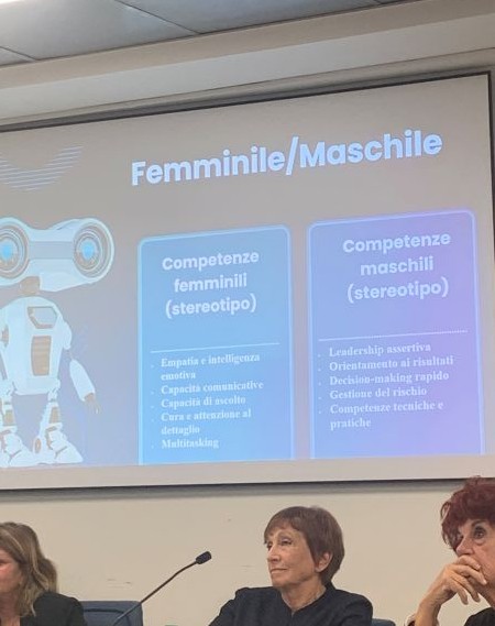 Hanno introdotto i lavori Lea Battistoni, della Fondazione Nilde Iotti, e Patrizia Di Santo, esperta di organizzazione del lavoro e politiche di genere, che ha riconosciuto in questa nuova era digitale una terza rivoluzione, dovuta a una rapidità di cambiamenti che influenza i rapporti sociali, economici e di potere, mette in crisi i nostri modelli di valore, provocando una sensazione di spaesamento. La possibilità di accedere a una mole enorme di informazioni è falsamente democratica, perché non tutti/e vi possono accedere, per cui si auspicano politiche di sostegno: inoltre, poiché questa mole di dati affonda nel patrimonio della rete, c’è il rischio che si perpetuino stereotipi e pregiudizi. L’IA trasforma il lavoro: il Future of Jobs Report 2025 stima che, entro il 2030, la creazione di nuovi posti di lavoro compenserà la perdita di posti di lavoro attuali, con una conseguente crescita netta del 7% dell’occupazione totale attuale. Ma pare che ancora le donne non raggiungeranno posizioni di comando: le nuove occupazioni, infatti, non riguarderanno le donne, che sono occupate in ruoli tecnici solo al 20%, e al 10% nelle start-up. Ancora le Stem sono materie ostiche per le donne. Ma, se l’IA viene sviluppata solo dagli uomini, si porta dietro tutti gli stereotipi del passato, influisce sull’accesso al mondo del lavoro e sugli sviluppi di carriera. Non dobbiamo quindi abbassare la guardia, ma continuare a portare avanti la nostra battaglia.