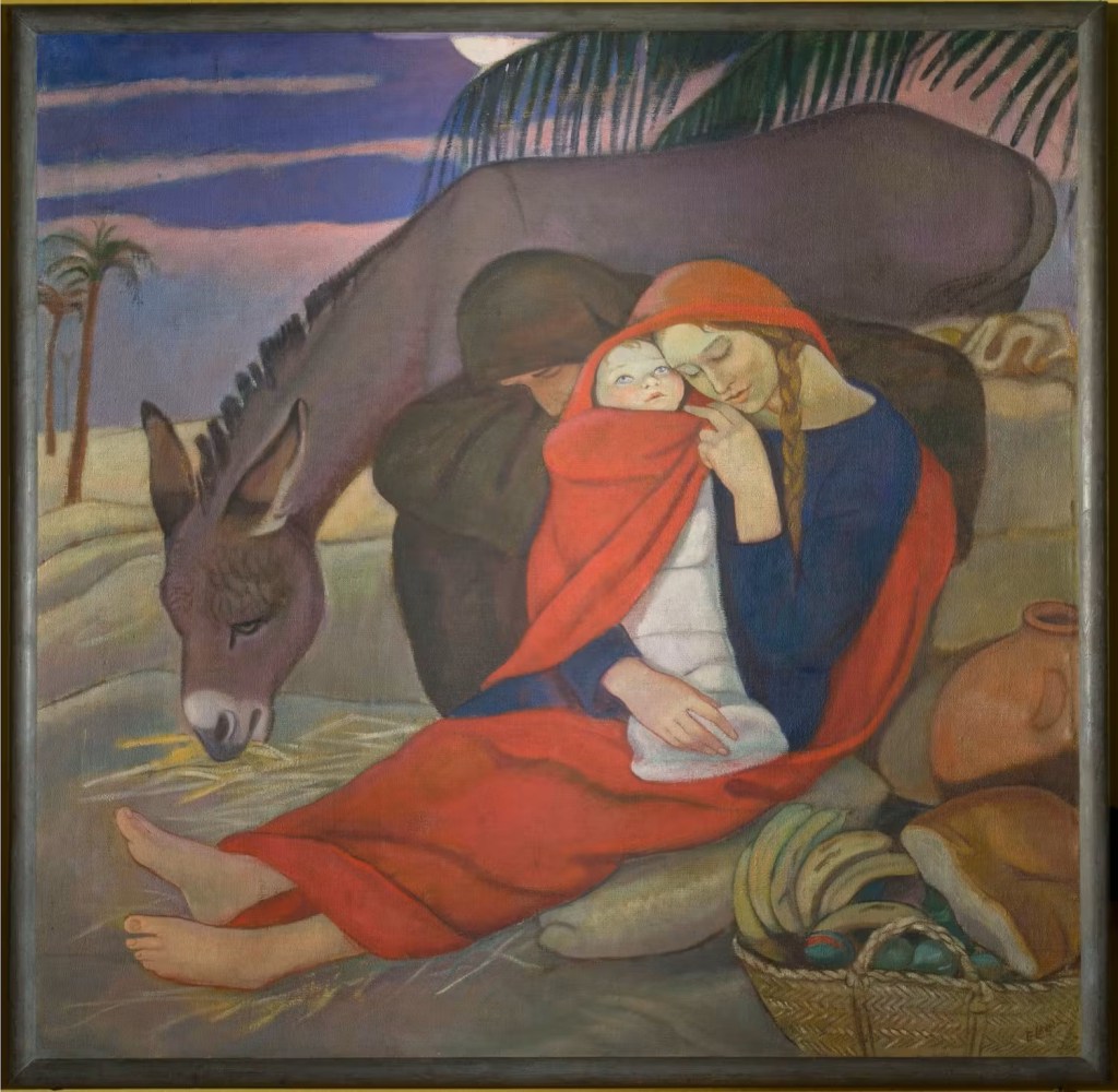 Furono conoscenze e approfondimenti importanti quelli condotti negli ambienti della capitale, anche se è importante precisare che Élisabeth Chaplin seppe mantenere, nella naturale evoluzione della sua arte, un linguaggio personale non facilmente inseribile e catalogabile in specifiche tendenze, apprezzato dalla critica a lei contemporanea che nel 1925, con le parole di Nello Tarchiani sempre sulle pagine dell’Almanacco della donna italiana, si spinse a definire «maschia e sprezzante» la sicurezza con cui la pittrice costruiva le sue figure. Ha gusto Nabis anche l’opera Riposo in Egitto, datato intorno al 1923 e intitolato in un primo momento più semplicemente Oasi, un titolo che esprime il modo personale di interpretare il racconto evangelico.