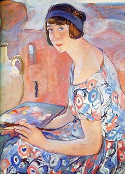 E infatti il museo degli Uffizi nel 1947 richiese in dono il dipinto, per collocarlo nella collezione degli autoritratti un tempo esposta nel Corridoio Vasariano. Il quadro è uno dei tanti della pittrice, che si è spesso raffigurata con tavolozza e pennelli, in pose apparentemente casuali e con angolazioni non prive di riferimenti alle inquadrature fotografiche.