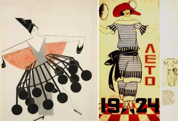 Sempre più interessata a un’arte che riflettesse la realtà sociale e fosse accessibile alle masse, si dedicò all’abbigliamento e al design tessile, lavorando per la Prima Fabbrica Statale di Stampa Tessile, dove realizzò centocinquanta disegni di tessuti, di cui venti furono prodotti. Gli abiti che disegnava, ispirati a quelli tradizionali russi, erano in modo specifico studiati in base alle esigenze di chi li indossava: tute adatte a ogni professione, divise e corredi per gli sportivi; i capi, essenziali, erano costruiti con la massima cura per essere sia stimolanti da guardare che estremamente pratici da indossare. E sulle pagine della rivista Lef (Left Front of the Arts), con cui collaborava regolarmente, teorizzava il vestito costruttivista: ideato per il lavoro, è un abito che privilegia la funzione sociale rispetto a quella estetica. Ogni decoro viene abolito a favore della comodità e della funzionalità.