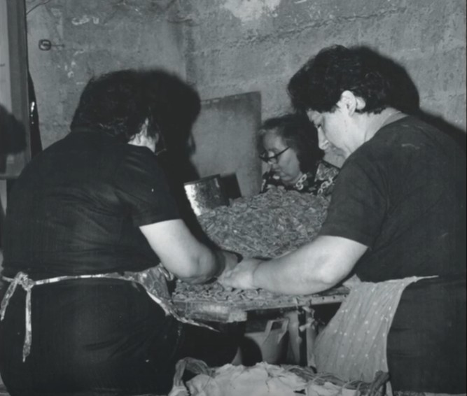 Separati i semi dai gusci, le donne passaturi rinchitra, le selezionatrici di mandorle sgusciate, eliminavano i frammenti di frutto e, dopo aver fatto un’ulteriore cernita, si occupavano di riempire i sacchi destinati alla commercializzazione.