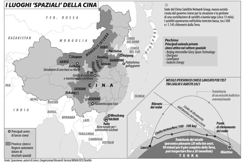 «La militarizzazione dello Spazio è un dato di fatto: ormai tutte le guerre sulla Terra iniziano nei cieli profondi». Questa affermazione è contenuta in uno degli articoli più interessanti della seconda parte del numero di Limes di maggio, Il cielo è sempre più rosso. Pechino sfida la supremazia cosmica Usa. La Repubblica popolare ha imposto lo sviluppo di capacità militari nello Spazio come priorità assoluta, incentivando nello stesso tempo anche gli investimenti delle imprese private in questo settore, conquistando il secondo posto tra le potenze dello Spazio. Tutto ciò ha avuto come effetto quello di allarmare gli Usa, che temono di perdere il primato. Ma non solo nel campo spaziale la Cina sta provando a superare gli Usa.