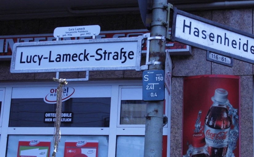 Gröbenufer — che prendeva il nome dal maggiore Otto Friedrich von der Gröben, costruttore della forte di Gross-Friedrichsburg, base per il commercio e il trasporto organizzato di schiavi — è stato ribattezzato May-Ayim-Ufer, in memoria dell’autrice, educatrice e attivista del Movimento Nero in Germania.
