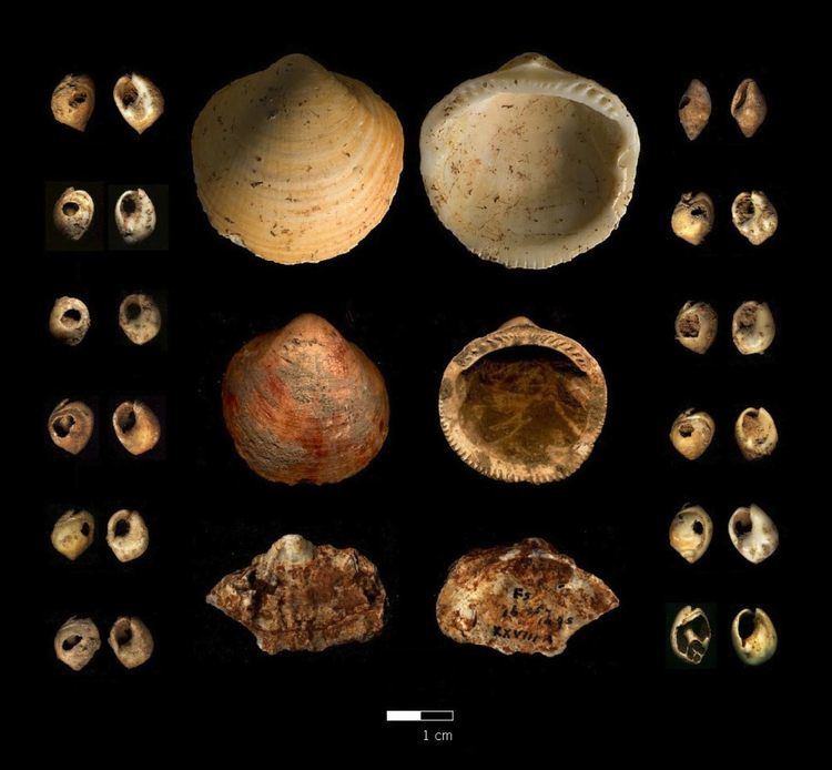 Ulteriori prove indirette dell’uso di corda e filo sono delle perle perforate fatte di gusci di uova di struzzo vecchie di 200.000 anni, conchiglie perforate artificialmente rinvenute nel sito sudafricano di Blombos e datate tra 75.000 e 80.000 anni fa, il cui modello di usura da utilizzo «è coerente con l’attrito causato dallo sfregamento contro fili, indumenti o altre perline» (Henshilwood, C., et al. 2004. “Middle Stone Age shell beads from South Africa”. Science 304: 404.), perline di conchiglia presenti in gran numero nel sito della grotta di Üçağızlı in Turchia (datato a 40.000 anni fa) e in quello di Ksar’Akil in Libano, mentre perline di guscio di struzzo sono state rinvenute in numerosi siti Msa dell’Africa orientale risalenti a 40.000 anni fa.