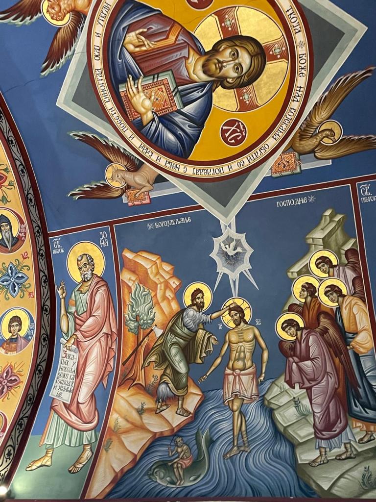 A gestire l’accoglienza turistica c’erano due ragazze, gemelle, felicissime di incontrare gli italiani. Ci hanno servito la cena e la colazione con i prodotti biologici della loro fattoria che ha l’orto, gli animali e il servizio ristoro per la stagione estiva, il tutto a prezzi modici per noi italiane/i. Il giorno dopo avevamo in programma la visita al monastero ortodosso di Ostrog del XVII secolo, incastonato verticalmente nella roccia a picco sulla pianura. Molti pellegrini salgono per accendere quelle candele sottili al santo, san Basilio di Ostrog che visse in queste zone.