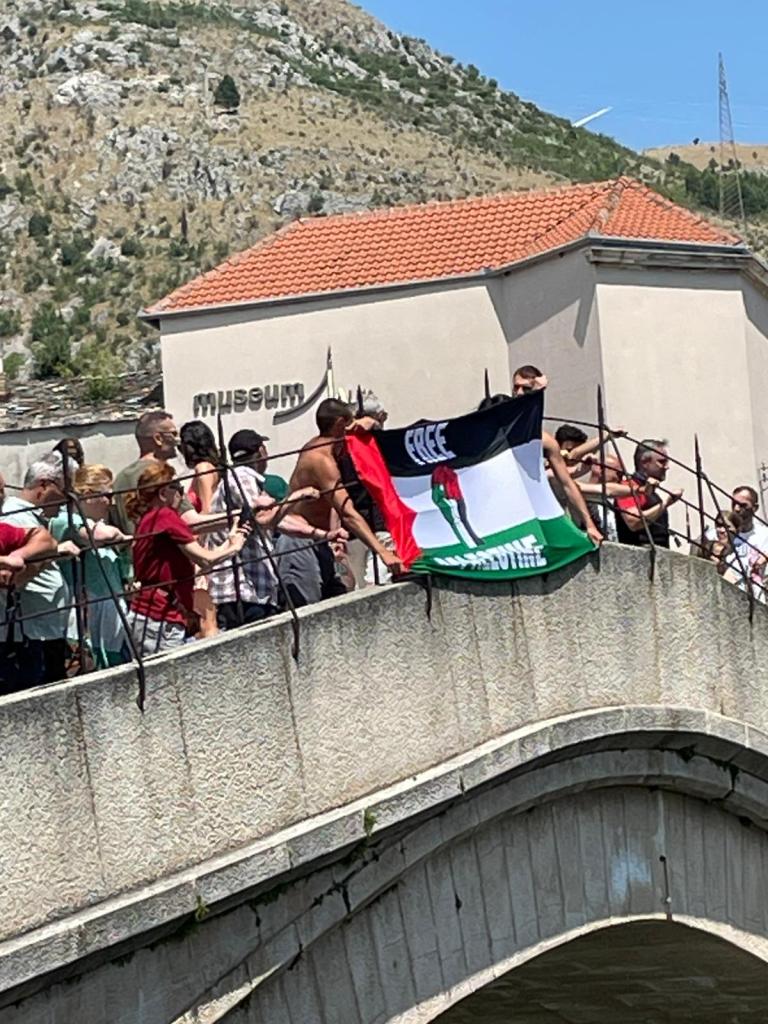 L’imperatore fu un grande persecutore dei cristiani, prima che Costantino venisse a cambiare il corso della storia. Lasciata Split ci dirigiamo verso Mostar in territorio bosniaco. L’interesse di tutti i turisti e anche nostro non può che essere il famoso ponte in pietra ad arco che unisce due parti della città divisa dal fiume Neretva, dall’acqua color smeraldo. Mentre mi trovavo in cima al ponte alcuni giovani hanno fatto calare la bandiera della Palestina e poi uno dei ragazzi si è tuffato nel fiume, come è uso fare dalle loro parti.