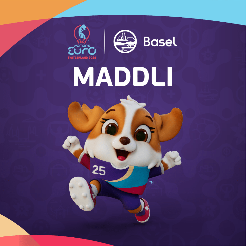 Maddli è una cucciola di San Bernardo, una razza canina originaria della Svizzera dal carattere fedele e coraggioso, che in questo caso ci ha ricordato che il calcio è uno sport per tutti e tutte, da giocare in maniera leale e rispettosa e da seguire con animosità, ma senza distinzioni. Oltre a essere simbolo di coesione e partecipazione, si ispira anche alla prima donna svizzera che è riuscita a conquistare la licenza da calciatrice, Madeleine Boll: Maddli, come mascotte, è una figura con fondamento storico e locale, ma incarna valori sani, di inclusione e rispetto, che ha seguito tutte le dispute in ognuno degli otto stadi in cui si sono tenute le partite.