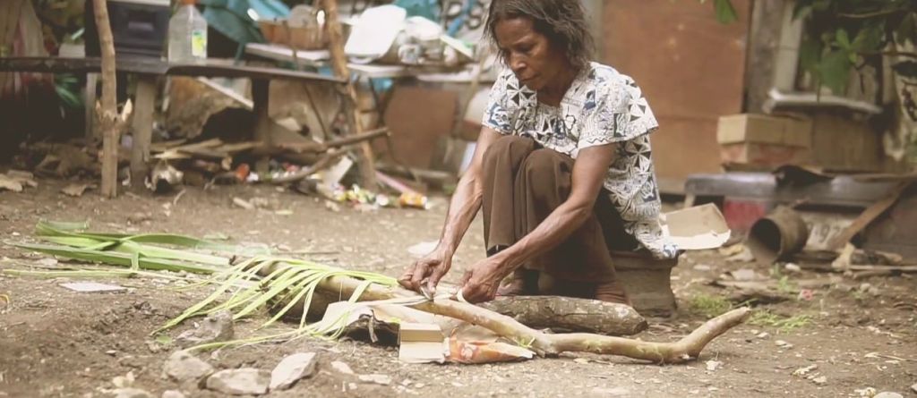 «Non importa dove si trovasse una donna Telefolmin, seduta o in piedi, le sue mani erano raramente inattive, le sue dita lavoravano incessantemente nell’attività continua di filare le fibre e intrecciare i bilum» (MacKenzie 1991).