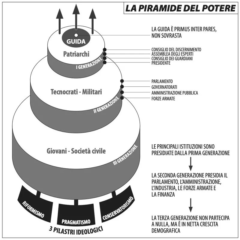 Sazegara ha visto il declino della Repubblica islamica, pur avendo contribuito a fondare il gruppo dei Guardiani della rivoluzione (pasdaran e Sepah), scrivendone lo Statuto, e a ricoprire nel primo decennio incarichi di governo. È stato al fianco di Khomeini, come voce di tutte le cassette che l’ayatollah divulgava dall’estero prima della rivoluzione, ma a trent’anni ha messo in discussione, anche grazie ai suoi studi di storia, dopo quelli di ingegneria meccanica e fisica, il progetto massimalista che aveva abbracciato negli anni della giovinezza. È stato più volte arrestato e condannato, anche in contumacia, per le sue idee diffuse attraverso i quotidiani e tra le persone appartenenti all’Accademia. Si è candidato alle elezioni ma la sua candidatura è stata respinta dal potere religioso. Col tempo ha capito che la religione deve costituire un fatto privato e non politico. Oggi così risponde alla richiesta di definire chi sono oggi pasdaran: «Sono un drago a sette teste, ognuna separata dall’altra. Fanno tutte parte del Sepah, ma hanno nella Guida Suprema il loro raccordo». Questa parte dell’intervista è la più istruttiva, soprattutto in merito alla settima testa, «quella mafiosa dedita al contrabbando. Morteza Rezaei, il “comandante ombra”, gestisce la produzione industriale della droga nota come Captagon, della morfina e dell’eroina, supervisiona il contrabbando di oppio e coordina — con la collaborazione di oligarchi russi — una vasta rete di narcotraffico estesa da Kabul a Caracas, mentre dentro l’Iran gestisce bische, case d’appuntamenti e spaccio».