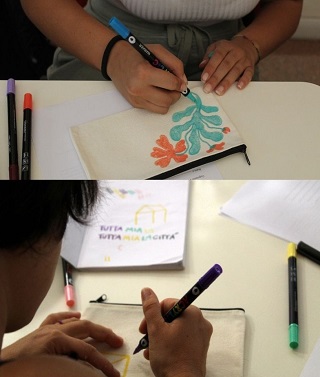 Sono state decorate delle cartoline in partenza bianche, su cui ciascuna di noi ha potuto disegnare e scrivere un messaggio affine al progetto: insomma, un piccolo augurio di parità, a portata di mano e da condividere. Lo stesso processo ha coinvolto gli astucci: fra fantasie, palazzi colorati, pattern e fiori, ognuno di essi è stato reso unico e speciale.