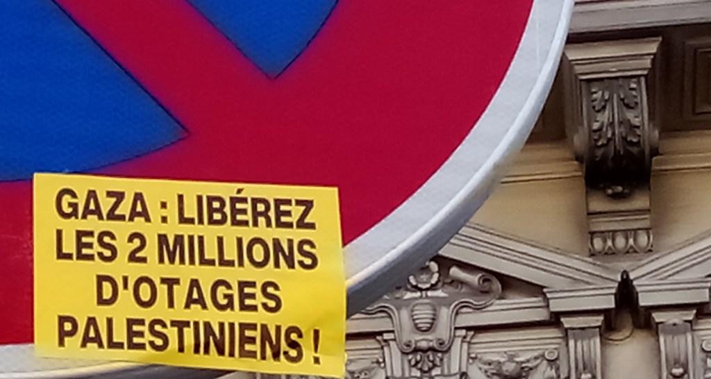 Al centro: Parigi, place de la République, ottobre 2023. Se gli israeliani smettono di combattere ci sarà la pace; se i palestinesi smettono di combattere non ci saranno più palestinesi.