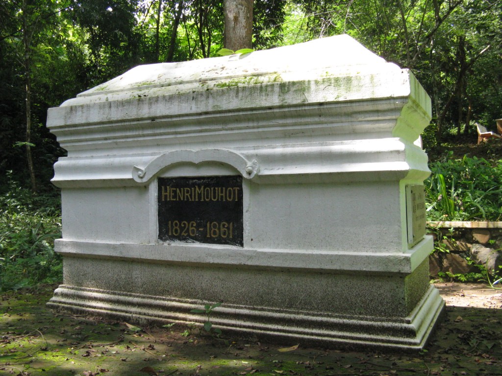 Nell’ultimo giorno di permanenza mio marito ha voluto cercare la tomba di Henri Mouhot, il viaggiatore francese morto proprio a Luang Prabang, di cui conosceva la vita e di cui aveva letto il diario di bordo. Aveva viaggiato molto e nel 1860 aveva scoperto i templi ad Angkor in Cambogia che giacevano sepolti sotto una vegetazione tropicale e li aveva descritti nel suo diario, facendone anche dei disegni. In seguito aveva voluto andare a rendere omaggio al re del Laos, ma vi aveva trovato la morte a causa della malaria, allora chiamata febbre delle foreste. Con un tuc tuc abbiamo voluto rendergli omaggio, ma il nostro autista non sapeva né dove si trovasse la tomba e neppure comprendeva la mappa che gli abbiamo mostrato; solo la nostra perseveranza lo ha convinto e indirizzato verso la radura accanto al fiume, nella zona a est della città, poco lontano dal centro, dove appunto giace la tomba e il monumento.