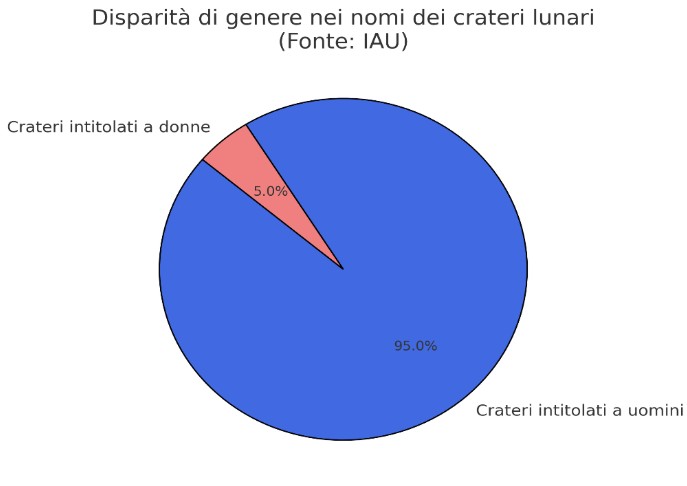 In questo specifico settore scientifico-disciplinare, il contributo delle donne è stato spesso misconosciuto e silenziato. L’oggetto stesso della materia porta i segni di questo occultamento: la negazione dell’apporto femminile alla ricerca si traduce in un’evidente disparità nella toponomastica siderale. Come si evince dall’Unione astronomica internazionale, l’ente preposto all’assegnazione dei nomi a partire dalle proposte presentate dalla comunità scientifica internazionale, ad oggi, infatti, i crateri lunari intitolati a donne rappresentano solo il 5% del totale.