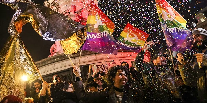 In copertina: Parigi, Place de la République. Festeggiamenti per la morte di Jean-Marie Le Pen