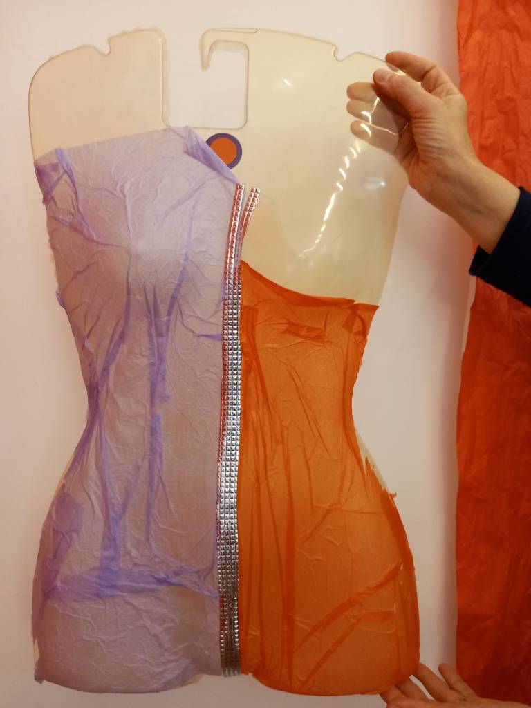 Sono ready-made industriali da vetrina, lavorati con colori acrilici e carta velina, maschere per corpi invece che per volti, definiti dall’artista «strati di pelle» che riportano le tracce di singole vite e insieme di una storia collettiva. Le persone vengono invitate a manipolare i busti indossandoli davanti allo specchio, alternandoli, combinandoli e sovrapponendoli e possono giocare a mascherarsi sotto strati di pelle diversi da quelli che hanno segnato il loro vissuto per assumere altre possibili identità sia individuali che collettive.