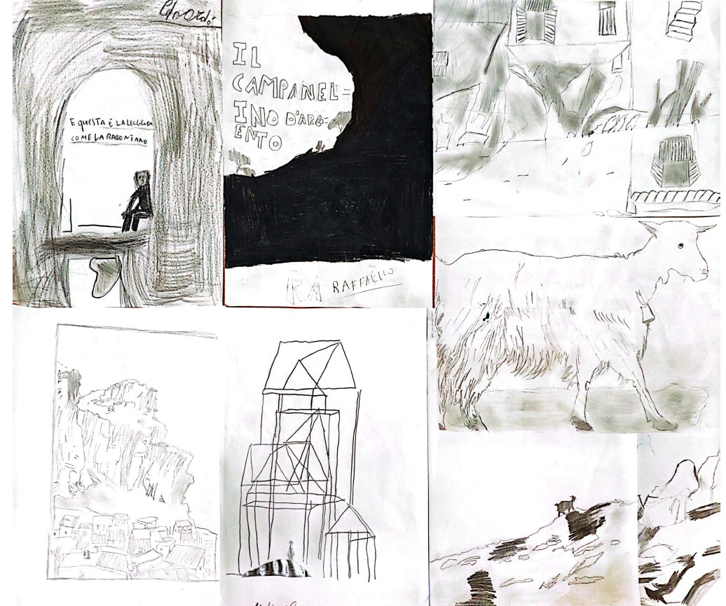 Completa il lavoro svolto dal plesso Chi so? So Maria!, il libro cucito realizzato dai bambini e dalle bambine della sezione C, a conclusione di un laboratorio creativo-manipolativo-cooperativo ispirato all’arte di Maria Lai. Alla stessa artista è dedicato il progetto Il campanellino d’argento della classe 4A della Scuola primaria Santa Caterina. A partire dalla lettura del libro omonimo, dopo un’ampia riflessione e rielaborazione della storia, gli/le studenti ne hanno illustrato alcuni passi in bianco e in nero, corredando il tutto con un cartellone fatto di materiale riciclato.