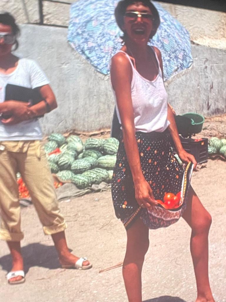 Con un certo sollievo ci avvicinavamo alla frontiera del nord con la Tunisia. Si doveva però cercare di spendere gli ultimi dinari algerini prima di uscire. Nella città vicino al confine pensammo di fare acquisti, oggetti di rame, tappeti o monili e così, mentre gli uomini andarono a cercare del cibo, noi tre ragazze entrammo in un bazar. Vidi i tappeti di media misure e mi misi a sollevarne uno dopo l’altro per scegliere quello che più mi poteva piacere. Ero concentrata sugli arabeschi di lana, ma all’improvviso mi sono sentita colpire sulle mani; era il proprietario del negozio che mi colpiva con un frustino e io ero allibita e spaventa. Le mie amiche mi proteggevano e mi dissero che forse una donna da loro non poteva toccare la merce, perché solo a un uomo ciò era consentito. Il proprietario mi guardava con l’occhio torvo, ma fortunatamente vedemmo i nostri tre uomini passare dalla grata del negozio ed erano tutti felici nell’annunciarci che avevano trovato due polli allo spiedo. Entrarono nel negozio e videro la scena delle mani colpite, urlarono contro al proprietario che solo allora abbassò il frustino. Si dovette per forza fare gli acquisti in quel negozio per consumare il danaro che sarebbe stato carta straccia fuori dall’Algeria, così mentre mio marito sollevava i tappeti io facevo la mia scelta.