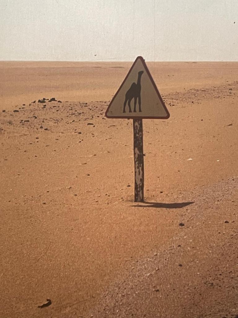 A un certo punto, in pieno deserto, sentimmo il suono insistente di un clacson benché nessuno ci stesse seguendo; scoprimmo che era il nostro clacson i cui contatti, alterati dal calore, avevano iniziato a farlo… suonare. Dal finestrino vedevamo dromedari in cammino in cerca di qualche arbusto; mi avvicinai e mi accorsi che due di loro stavano mangiando della carne di un loro compagno morto.