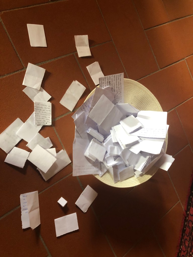 Successivamente, i bigliettini anonimi sono stati raccolti in tre cappelli e pescati per la lettura da parte di studenti volontarie/i.