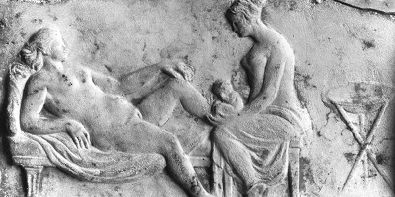 In copertina: antica scultura in rilievo romana di un’ostetrica che assiste una donna che partorisce. Via Wikimedia Commons.