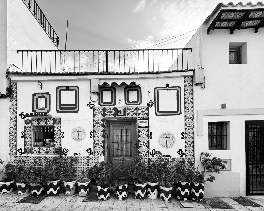 Scorci del Barrio Santa Cruz. Il quartiere più antico di Alicante, di origine araba, caratterizzato da strette viuzze, scalinate bianche, case colorate, chiesette e belvedere, che conducono fino alle mura medievali e alla fortezza di Santa Bárbara, offrendo suggestive viste sulla città.