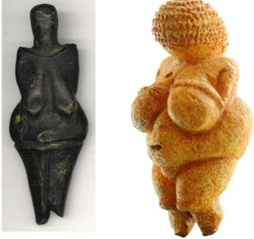 Le più antiche immagini della spiritualità femminile sono senz’altro le famose statuette cosiddette di Venere, risalenti al paleolitico: con le forme accentuate, nei seni, nei fianchi e nel ventre, il volto inesistente o nascosto dai capelli, le gambe affusolate, simboleggiano un archetipo universale, una dea-madre, la cui capacità di generare era considerata sacra, un fenomeno sorprendente e prodigioso. Associate a riti sciamanici, questi amuleti magico-religiosi servivano probabilmente a favorire la procreazione e il buon esito del parto.