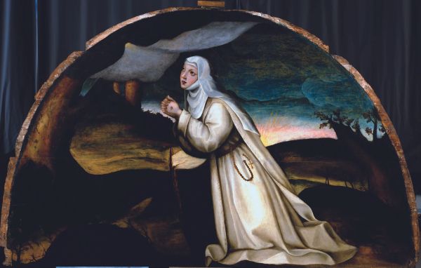 Nelle opere monastiche la spiritualità si manifesta in pale d’altare, scene sacre, attraverso le quali la vita claustrale si trasforma in un’esperienza estetica e religiosa di spiritualità, come nel caso di Caterina Vigri, fondatrice e prima badessa del monastero delle clarisse del Corpus Domini di Bologna. Nota come la “Santa di Bologna”, ha utilizzato pittura e miniatura per esprimere la sua profonda esperienza mistica, per glorificare Dio e comunicare la bellezza della sua intensa vita di unione con il Signore, vissuta attraverso preghiere e visioni. La sua arte è uno strumento per la devozione, la contemplazione della Passione di Cristo e la trasmissione della fede. Nel suo breviario miniato, destinato a sé stessa e alle consorelle, specialmente alle novizie, la bellezza artistica diventa veicolo e testimonianza della sua ricerca di Dio.