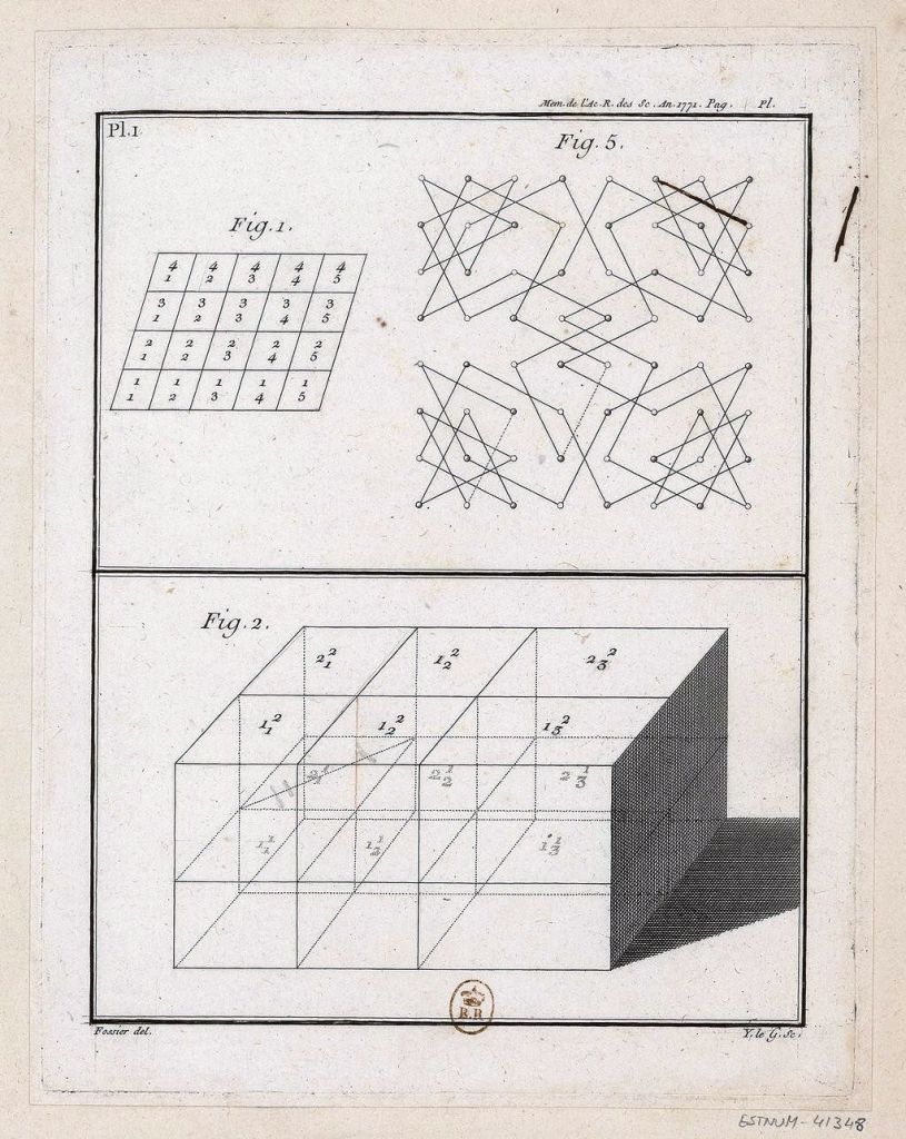 Tavola 148 dell’edizione del 1771 di Remarques sur les problèmes de situation di Alexandre-Theophile Vandermonde