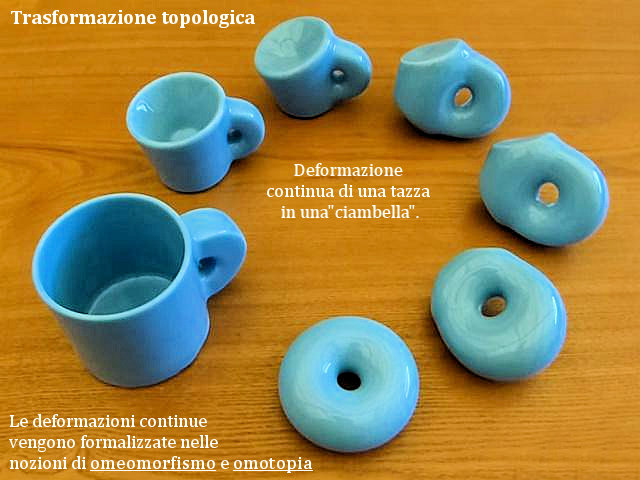 Trasformazione “topologica”, ovvero trasformazione continua di una tazza in una ciambella o toro