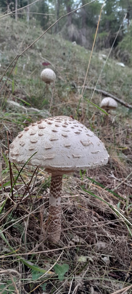 La montagna riprende i suoi colori di inizio autunno e nel bosco la fanno da padrone i funghi, in particolare le buonissime mazze di tamburo, commestibile e ottime impanate. Le lascio nel loro habitat perché sono troppo belle.
