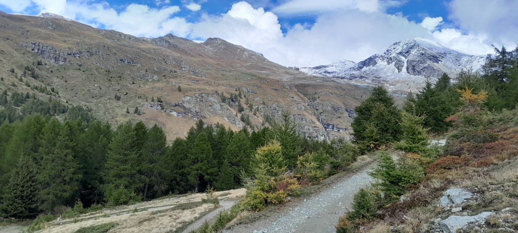 Così di buon mattino parto da Estoul, in Val d’Ayas, per salire alla Conca di Palasinaz coni suoi numerosi laghi che si sviluppano fra i 2500 e i 2600 metri di quota.