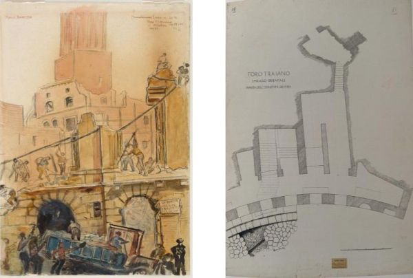 Viene ricordato anche un caso emblematico, un reperto perduto che sopravvive proprio grazie ai disegni e agli acquerelli di Barosso, quello del Compitum Acilium, piccolo santuario dedicato ai Lari, rinvenuto nel maggio del 1932 durante lo sterro della Velia e distrutto per la fretta dei lavori.