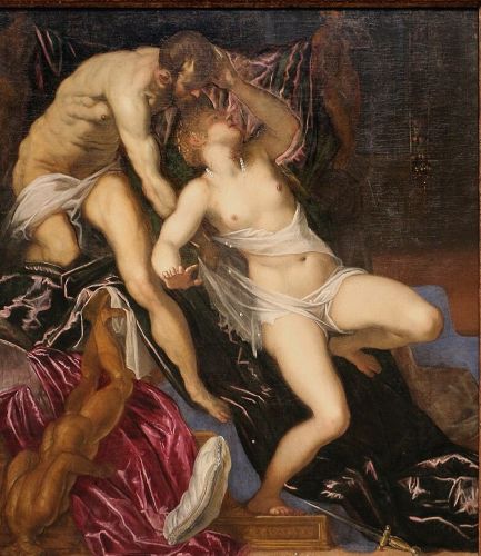 Nel dipinto di Tintoretto l’artista indulge sull’avvenenza di Lucrezia, come se la sua bellezza giustificasse la violenza, e alla fine ci induce a pensare che sia stata colpa della donna, che ha suscitato desideri carnali.