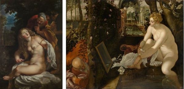 C’è anche la violenza dello sguardo, è il caso di Susanna spiata dai vecchioni: spesso è un pretesto per soddisfare la “pruderie” di committenti che si compiacciono di soggetti raffiguranti nudi femminili. L’episodio, spesso rappresentato nell’arte, è diventato anche una metafora della denuncia di abusi e della resistenza femminile, in particolare nelle opere di artiste come Artemisia Gentileschi, dove, però, Susanna appare infastidita, irritata e con la mano caccia i due anziani.