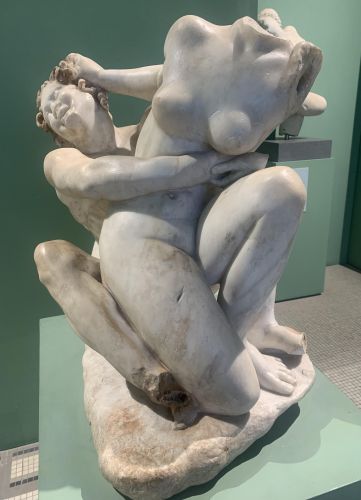 Come la didascalia apposta a un Gruppo scultoreo di un Satiro con una Ninfa, copia romana dell’inizio del I secolo d.C. esposto alla Centrale Montemartini di Roma, che parla di un gioco amoroso, scena di un genere erotico molto diffuso specie come scultura ornamentale da giardino, non di una violenza in cui la ninfa tenta disperatamente di sfuggire alla presa del satiro!