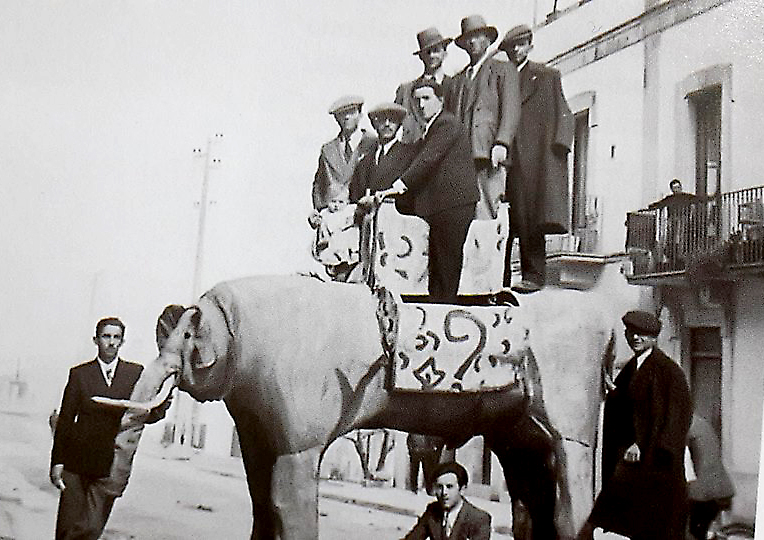 Dagli anni Trenta, un gruppo di lavoratrici e lavoratori dell’artigianato convenne che fosse opportuno abbellire i carri, realizzati fino ad allora con tralci, edera e rami. Si iniziò così a lavorare la cartapesta, costruendo piccoli manufatti formati da fogli di giornale uniti tra loro grazie alla colla di farina. Il primo carro allegorico fatto interamente di cartapesta da Filippo e Marino Pugliese rappresentava un elefante: nella sua pancia, bambine e bambini che gettavano coriandoli dalla proboscide. Difatti la struttura realizzata di legno e da una rete metallica da pollaio permetteva di ospitare il peso di ben sei persone.