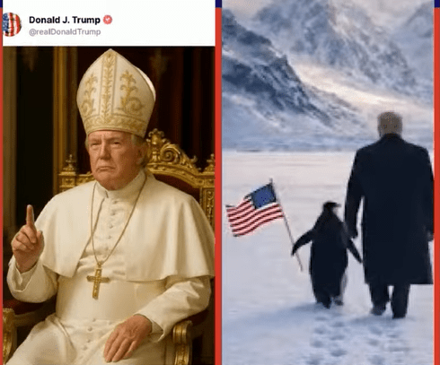 La sacralizzazione della politica e la degradazione dell’elemento più intimo confessionale diventano così complementari: se la prima costruisce fedeltà, la seconda abbassa la soglia di quello che è accettabile e dicibile. L’esito di queste dinamiche è una riscrittura dell’immaginario pubblico in cui l’indegno è reale e concreto, il blasfemo diventa provocazione, satira e la schiettezza la maschera dietro cui si celano la violenza simbolica e verbale. Il meccanismo delineato si estende anche ai social media, tanto da poterne parlare in termini di Slopaganda, ovvero di una strategia basata sulla creazione di immagini realizzate con l’intelligenza artificiale al fine di saturare i feed e rimodellare l’ambiente informativo, imponendo un clima di scherzo che camuffi questioni più rilevanti.