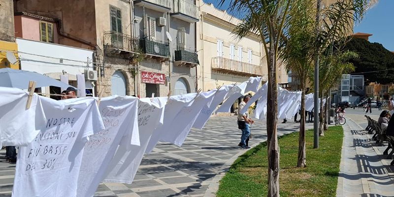 Cinquanta magliette bianche sono state stese al vento, come un bucato quotidiano che però portava impresso il “carico pesante” di 50 pregiudizi ancora troppo radicati nella nostra società. Il movimento di quelle magliette, sospinte dalla brezza marina, ha attirato lo sguardo di centinaia di persone e trasformato un gesto domestico in una denuncia politica. È stata una comunicazione simile a uno slogan pubblicitario, ma con la profondità di un messaggio capace di scuotere le coscienze con estrema immediatezza.
