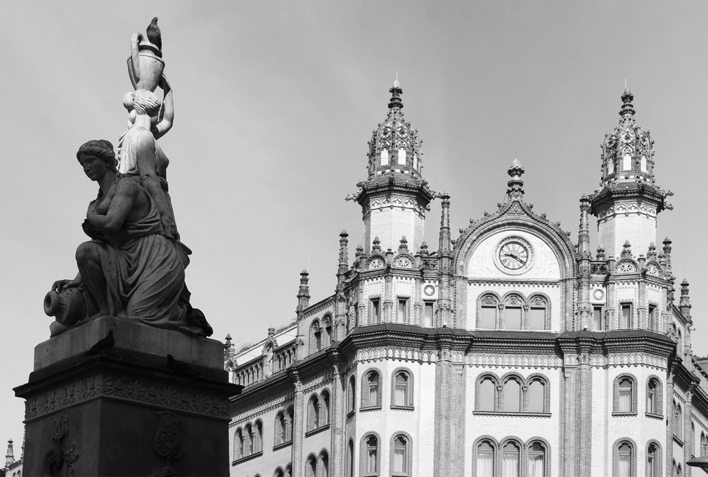 Un edificio ricco di particolari e ornamenti che riflette lo stile della città in cui dominano Neogotico, Art Nouveau, Classicismo e Bauhaus