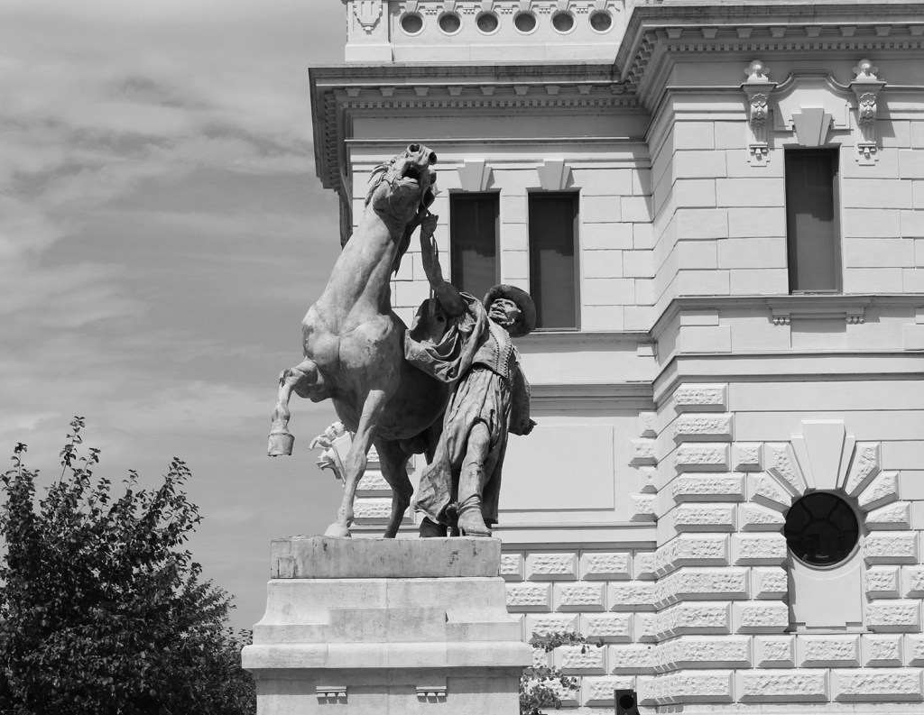 Csikós-szobor, la statua del mandriano a cavallo; è riccamente dettagliata e si trova vicino alla Scuola di Equitazione Reale