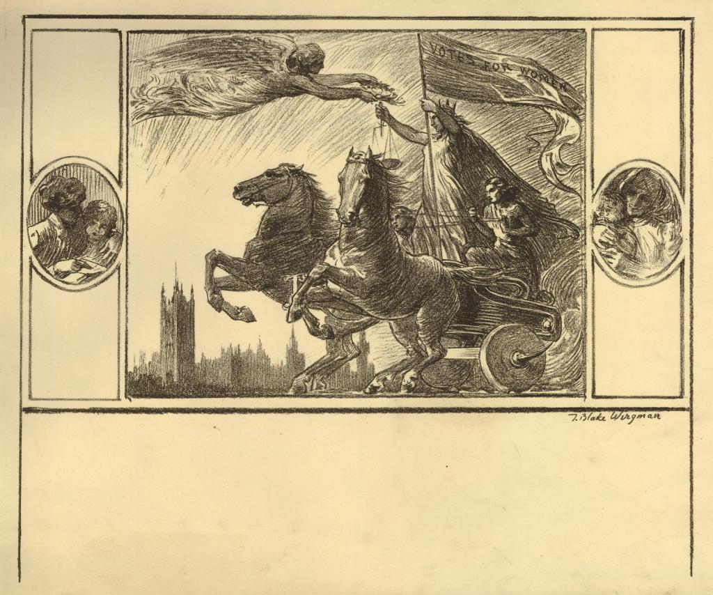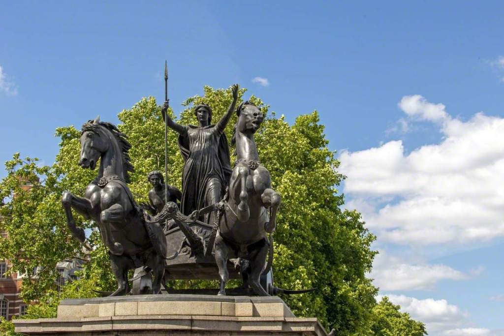 Negli archivi del museo c’è inoltre una litografia dell’artista Theodore Blake Wirgman che raffigura Boudicca con una bandiera con scritto «Votes for women». L’immagine riprende la scultura di Boudicca e le sue figlie sita all’inizio del Westminster Bridge dal lato di Westminster. Tra le diverse versioni della storia di Boudicca, riportiamo quella riferita da Charlotte, la guida del tour di Westminster. Boudicca era la moglie del re degli Iceni, una tribù che viveva nell’Inghilterra orientale. Alla morte del sovrano, circa nel 60 d.C, Boudicca gli successe al trono, dal momento che i costumi celtici prevedevano l’uguaglianza fra i sessi. I Romani non riconobbero l’autorità della nuova regina e stuprarono lei e le sue due figlie. Boudicca allora, con il supporto delle altre tribù celtiche, guidò una battaglia contro gli invasori nonostante l’evidente squilibrio di forze e morì in battaglia.