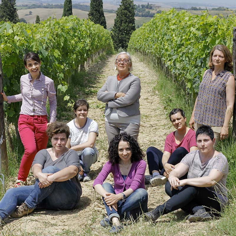 Il progetto, che prende il nome di “Prime Donne”, nasce per caso. La mia azienda deriva da una divisione dei beni dei miei genitori. Quando mia madre decise di andare in pensione nel 1998, le aziende e le proprietà dei genitori passarono a noi figli. Nell’idea di mia madre, mio fratello, essendo maschio, era più adatto a continuare l’attività familiare, che era quella di produrre vino a Montalcino. Quando dissi che volevo anch’io avere la possibilità di produrre un vino col mio stile e col mio nome, i genitori mi assegnarono due parti delle loro proprietà. Erano due parti marginali che avevano bisogno di grosse ristrutturazioni perché nella parte di Montalcino, che a quell’epoca si chiamava Casato, c’era un podere con delle vecchie vigne e un rudere con un albero dentro, tutto collassato. Nell’altra azienda, invece, c’era un forte indebitamento e una situazione non reddituale. Per aiutarmi in questa fase iniziale in cui c’erano tanti investimenti da fare (creare un brand e una rete commerciale, costruire le cantine, ripiantare le vigne…) mia madre mi diede una piccola quantità di vino Brunello in botte. Il vino Brunello deve rimanere in cantina quattro anni e mezzo e ha bisogno di cure costanti, ma io non sapevo come fare, non ero un’enologa. Quindi telefonai alla scuola di enologia più vicina e chiesi se ci fosse la possibilità di assumere uno/a studente. Mi dissero che i buoni enotecnici devono essere richiesti con almeno due anni di anticipo, mentre le donne erano tutte disponibili perché le cantine non le assumevano come direttrici. Mi resi conto dell’esistenza di una discriminazione che era così antica ma così diffusa e così normale che non si vedeva. Risultava normale che un cantiniere fosse maschio, come un meccanico fosse maschio, un elettricista fosse maschio… Allora decisi di fare qualcosa per cambiare questa situazione: aprire una cantina di sole donne per dimostrare che i grandi vini non hanno bisogno di forza fisica, hanno bisogno di talento. All’inizio la mia scelta è stata presa solo come una scelta di marketing, poi si sono resi conto del fatto che in venticinque anni noi siamo riuscite a portare i nostri vini in quarantaquattro mercati, dimostrando che la nostra scelta era valida.