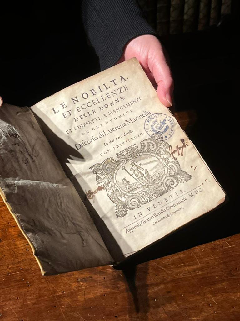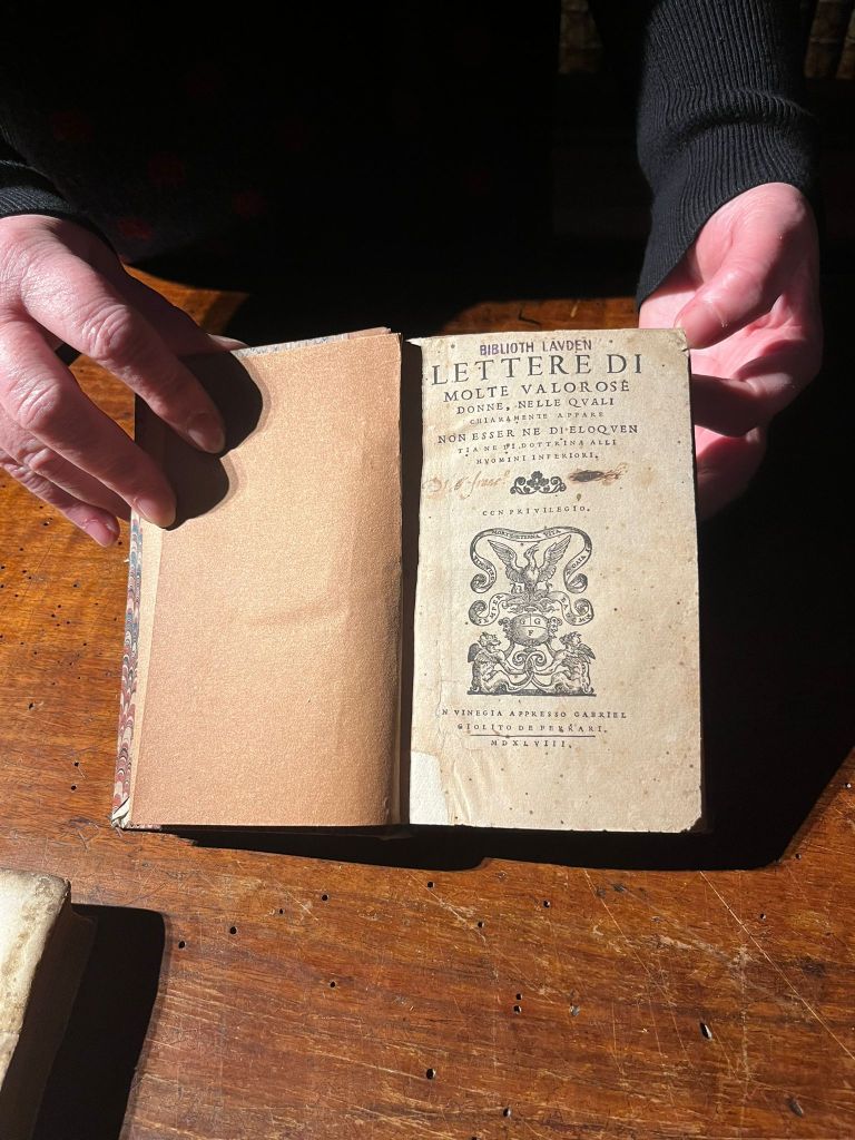 È proprio nella Sala dei Filippini che sono custoditi alcuni scritti di autrici e autori italiani che hanno partecipato alla querelle des femmes: tra questi una cinquecentina stampata a Venezia nel 1454 di Vittoria Colonna, poeta e fondatrice di un circolo culturale di cui facevano parte diverse personalità eminenti del periodo, tra cui Michelangelo Buonarroti, Ludovico Ariosto e Pietro Aretino. Ma non solo, la ricerca ha portato Rita Tartiviti a entrare in contatto con due opere di Lucrezia Marinella, scrittrice veneziana nata nel 1512, una delle autrici che parteciparono più attivamente alla querelle. Una tra queste è il discorso Le nobiltà et eccellenze delle donne et i difetti, e mancamenti de gli huomini.