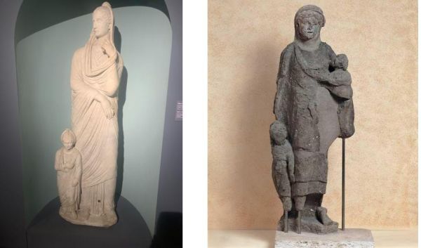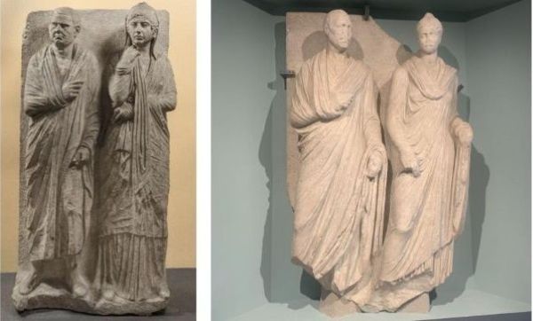Molti sono i rilievi funerari, in cui la moglie è in coppia col marito.
